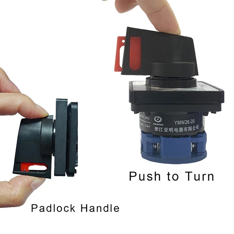 Jako profesjonalny producent przełączników elektrycznych z ponad 30-letnim doświadczeniem, YAMING wprowadza na rynek obrotowy przełącznik krzywkowy 20A z kłódką (model wewnętrzny: YMW26-20NS), arcydzieło łączące dziesięciolecia doświadczenia produkcyjnego i innowacji technologicznych. Ten produkt został zaprojektowany w celu zwiększenia kontroli bezpieczeństwa i zapobiegania nieprawidłowemu działaniu, odpowiedni do obwodów AC 50 Hz, maks. 690 V i DC 240 V, obsługujący prąd znamionowy do 20 A.
