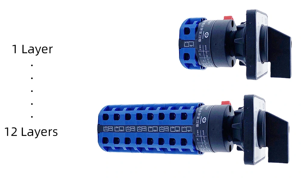 - Elementy systemu: Elastyczne opcje warstw – 1–12 warstw dla przełączników pozycjonujących, 1–3 warstwy dla przełączników samoresetujących i 1–6 warstw dla przełączników sterowania silnikiem.