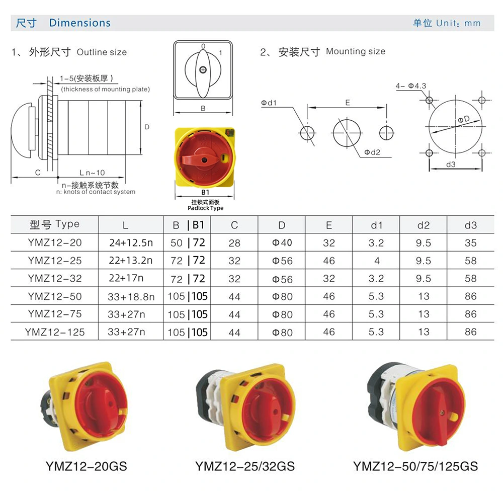 Szczycąca się ponad 30-letnim doświadczeniem zawodowym firma Zhejiang Yaming Electric jest wiodącym producentem wysokiej jakości przełączników elektrycznych. Wspierani przez duże możliwości techniczne i kompleksowy system zarządzania jakością, z dumą przedstawiamy nasz dwupozycyjny przełącznik krzywkowy z kłódką 32A OFF-ON (kod wewnętrzny: YMZ12-32GS). Cechujący się wyjątkowym kunsztem i zaawansowaną technologią, przełącznik ten jest wyposażony w funkcje zapobiegające nieprawidłowemu działaniu, gwarantujące stabilne i wydajne sterowanie obwodem.
