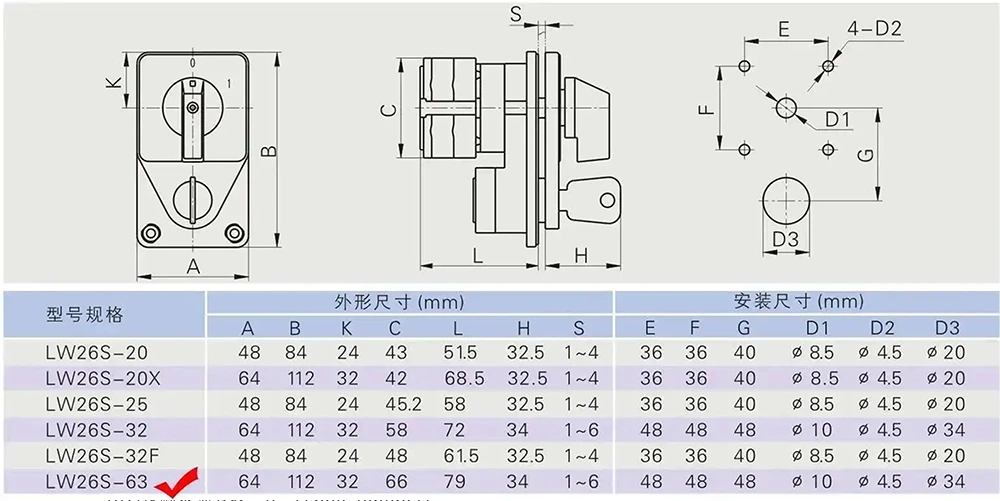 Przełącznik krzywkowy LW26 63A z kluczem przełączającym ma wiele opcji klasyfikacji, aby spełnić spersonalizowane potrzeby różnych scenariuszy zastosowań. Konkretna klasyfikacja i zakres zastosowania są następujące: