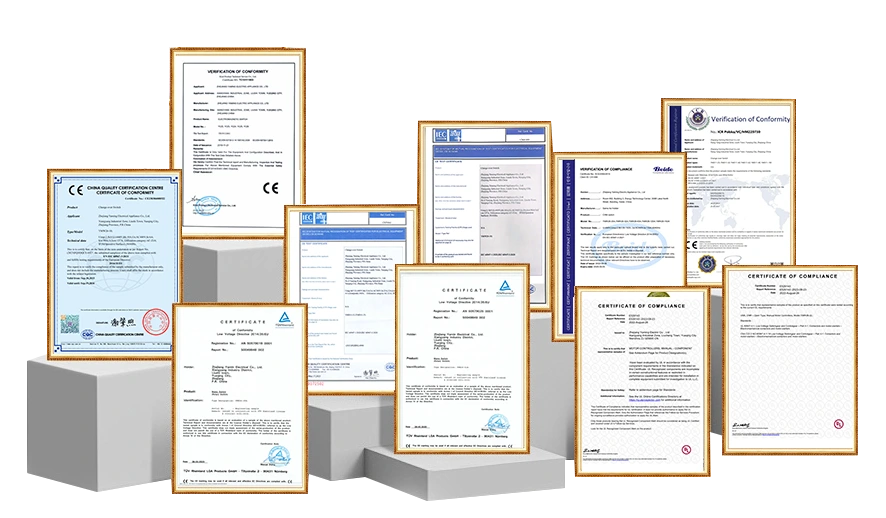 Jeśli chodzi o kontrolę jakości, firma przeszła certyfikację systemu zarządzania jakością ISO9001, krajową certyfikację 3C, a także niemiecki TUV, UE CE, Stany Zjednoczone UL i inne międzynarodowe autorytatywne certyfikaty oraz zgodnie z normami środowiskowymi ROHS.
