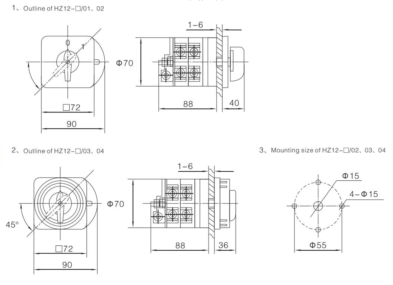 As a versatile main power switch, the HZ12 Plate Mounting With Protective Cover Cam Combination Switch is widely used in various fields, including but not limited to: ventilation equipment, machine tools, control cabinets, various electrical devices and water pump systems. Its stable performance, high safety and strong adaptability make it suitable for both industrial production sites and commercial electrical systems. Whether in the manufacturing industry, construction industry or water treatment industry, this switch can provide reliable electrical control support, ensuring the safe and efficient operation of equipment and systems.
